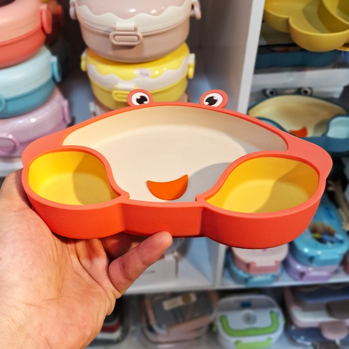 این ظرف با فرم خرچنگ، رنگبندی ملایم و چهره دوستداشتنی، کاملاً متناسب با روحیه کودکان طراحی شده است. بخشبندی هوشمند ظرف به والدین کمک میکند تا غذاهای متنوع را بهصورت جداگانه سرو کنند و کودک نیز بدون بههمریختگی، راحتتر غذا بخورد.