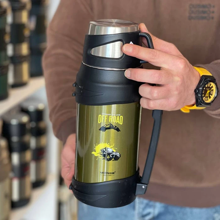 اگر به دنبال یک فلاسک بسیار بزرگ، مقاوم و بادوام هستید که بتواند نوشیدنیهای گرم یا سرد را برای ساعتهای طولانی حفظ کند، غول فلاسک ۱۸۰۰ میلیلیتری دقیقاً همان چیزی است که نیاز دارید. این فلاسک با طراحی صنعتی، بدنه استیل ضخیم و ظرفیت بالا، گزینهای ایدهآل برای سفر، کمپینگ، کوهنوردی، محل کار و حتی استفاده خانوادگی محسوب میشود.